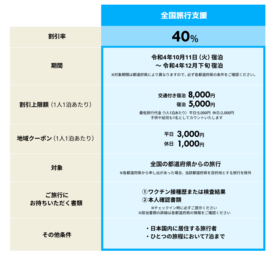 全国旅行支援の割引率など